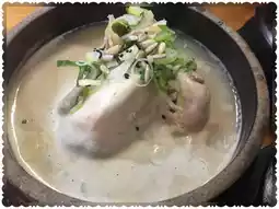 Tosocho Ginseng Chicken Soup is located next to Gyeongbokgung Palace in Seoul. It is an old Korean house with an antique style and has been open for more than 40 years. It has a table area, a low wooden table, a traditional Korean warm wooden floor, and a shoe-removing seating area.