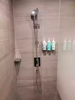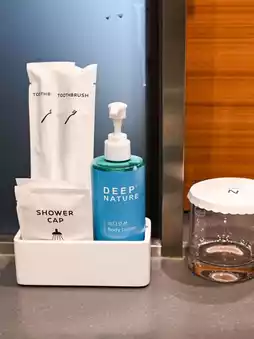 and the washroom was spacious, so I could spread out my skincare products and hair products and use them comfortably🤍
