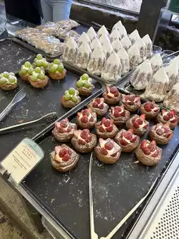 The bread was good, but the interior was crazy.. The cafe is divided into two buildings and there were more seats than I thought. There's also a terrace.