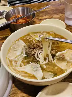 The noodles are surprisingly smooth😍, and paired with shallots, minced meat, chopped black fungus, and small wontons in the soup, it is very flavorful and surprisingly delicious! If you like kimchi and hot sauce, just add as much as you want, it will be just as delicious 😋😋!
