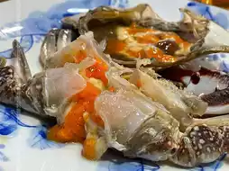 I ate too much at lunch, so I thought of eating congee in the evening. I saw this sauce crab restaurant seemed quite good, so I ate it again. Bacon offal congee, green congee, does not look good, but it is very warm and fresh. The sauce crab head has a little alcohol flavor in one bite, which is better than before. The wall wrote many customers' good reviews about the restaurant, plus the owner is very hospitable, afraid I do not know how to eat, personally helped me peel shrimp, demonstrate how to eat sauce crab, won the taste and humanity, completely won. 👍