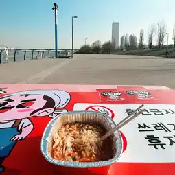 When you get tired of walking or cycling, you can have a picnic with instant noodles in the park. In the park, you can see many people setting up tents or carpets, and then having a bunch of snacks or ordering takeout and having a picnic in the park. The convenience store in Han River Park has a special automatic instant noodle machine that you can try.