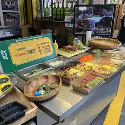 The bento cafe is located on the second floor of the Customer Satisfaction Center near the center of Tongin Market. Look for the restrooms and map on the first floor. There are also tourists wandering around, so it should be easy to find.