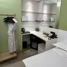 The stylish room is clean and spacious. You can easily spread out your suitcase. The desk is large and Wi-Fi is also available, making it easy to work on your computer.