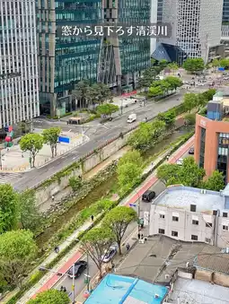 From the window, I could see Cheonggyecheon and Jonggak Tower.
