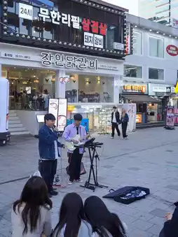 For me, it is one of the best places for shopping and eating. The street is very long with different vibes during the day and at night. Great atmosphere! Many shops and styles available for everyone with reasonable price and tax refund available in some stores. You’ll need to spend a couple hours exploring the shops and alleyways as there are some nice hidden gems around the place. It’s great for affordable shopping and for food & beverage. Probably the hottest place is Seoul in terms of nightlife. Clubs, restaurants, bars, coffee shops, everything in one place. The streets are filled with young people from all over the world, students or tourists. Very touristic and lots of energy! You will see a lot of talented music performers. Going here is a must when you're in Seoul. The vibe is so different compared to Myeondong and Itaewon.