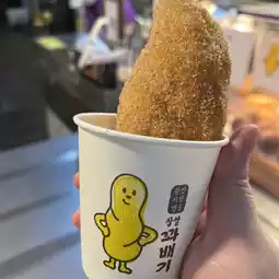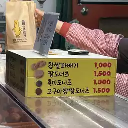 This is a shop where you can eat freshly fried gwabaegi, and you can watch them being made while you wait in line. Gwabaegi is like a Japanese twisted doughnut.