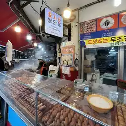 The gwabaegi (donuts) made with glutinous rice flour are also popular here. From simple twisted ones to ones filled with bean paste.