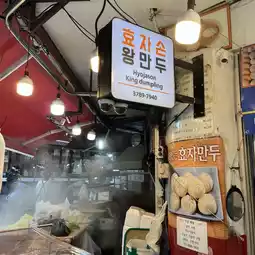 "Hyojaseon Wangmandu/효자손왕만두", which is famous for its mandu on the main street of Namdaemun Market, is a famous store that sells handmade kimchi and dumplings with meat.
