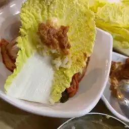 It comes with Chinese cabbage and mini barley rice, so you can dip the fresh Chinese cabbage in miso ♡