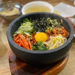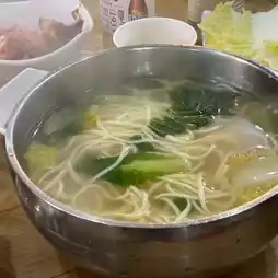You can add garlic, chili peppers, and soy sauce to your kalguksu as you like! I've never eaten such delicious kalguksu... 🫠The hot stone bibimbap is also not too spicy and is the best! 😭❤️
