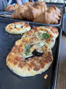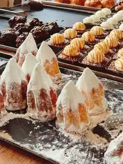 There are many types of baked bread sold in the store, both salty and sweet. We chose the crispy and delicious croissants from Snow Mountain PANDORA. We also ordered croissants with butter fillings that were not greasy at all and cheese ink buns, etc.