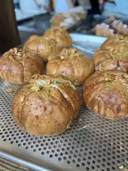 The cafe is divided into a bread ordering area on the left side 🥰 and a traditional Korean house seating area on the other side 😎 When we arrived, we saw long queues on both sides and decided to go our separate ways 😜 Finally, we were able to get a seat and order coupons at the same time✌️