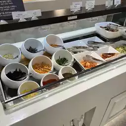 For meals, there is a Korean buffet. There are hot meals such as bulgogi and kimchi dumplings, bibimbap that can be arranged to your liking, Korean side dishes, toast and bread, salads and fruit, so you can enjoy Korean cuisine until just before you depart.