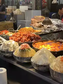 When traveling to Seoul, a must-visit place is Gwangjang Market, a food paradise😆 Even on weekdays, this place is bustling with tourists and citizens, and there are so many delicious foods like Bindaetteok, Drug Gimbap, and Dak Gangjeong!!👍🏻