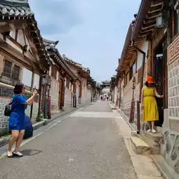 The cover picture is the main street containing traditional houses on both sides. There are various Hanok rental shops as well where you can rent traditional Korean dresses. You will see many people dressed in Hanok and clicking pictures, particularly in this street.