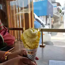 One such case is BaskinRobbins! They have opened a Hanok style branch and sell completely Korean flavored ice creams, which you won't find in normal Baskin Robbins. We tried one such ice cream by the name of "Sweet corn ice cream," and it was yummy😋