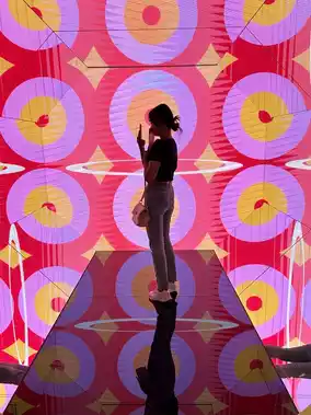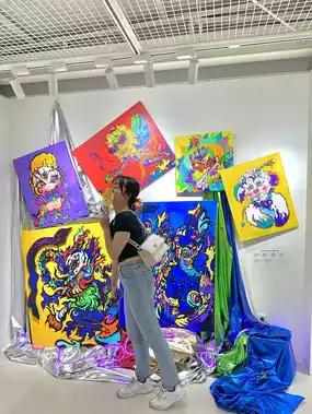 In addition to activities, Playtown has four floors. On the first floor, you can order food and buy goobne snacks and peripherals. The second floor is for dining and taking photos. The third and fourth floors have various art galleries, exhibition halls, and the LESSERAFIM hexagonal check-in corridor.