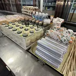 Aside from hot sandwiches, they also have kimbap and kamaboko oden, and you can also buy banana milk (banana milk) from Korean food manufacturer Binggrae, which is a favorite of tourists and locals.