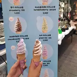 🍦After that we had soft serve ice cream, we had two flavors, 🍦the first one was vanilla blueberry mixed flavor, 🍦the second one was chocolate vanilla mixed flavor😆 Both flavors are delicious, very refreshing😍The price is cheap, only 5000 Won per stick⭐