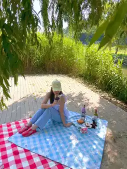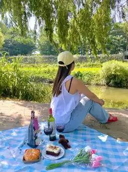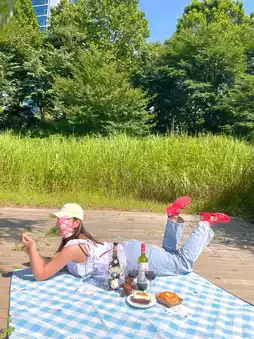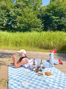 These days, the weather is perfect for a picnic (?) The rainy season is over,, When the sun is shining brightly and brightly, what better way than a picnic! With a picnic set from a travel shop in the neighborhood