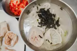 The recommended menu and the most popular order is Kalguksu, Korean noodles, and Mandu, Korean dumplings.