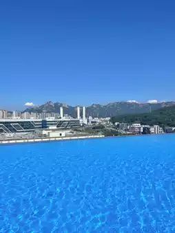 Enjoy the Bukhansan view infinity pool in the city🏊♂️
