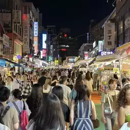Hongdae (Hongik University) is densely populated with coffee shops, art galleries and fashion shops in this area, as well as many live music bars and nightclubs, popular with local young people and college students as well as many shops specializing in handmade clothing and luxury goods.