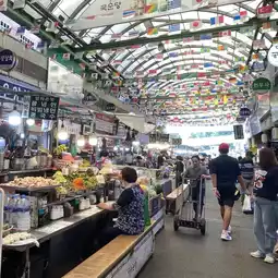 Gwangjang Market is very large and has a wide variety of products. It is surrounded by snack stalls and there are clamorous sounds. It is very lively. You can try many Korean snacks here, and they are made to order and the price is very cheap.