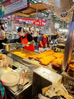 There are various restaurants in Gwangjang Market, selling authentic traditional Korean snacks such as mung bean pancakes, sesame seaweed rice rolls, fish cake soup, etc., which are very popular among tourists and locals. Gwangjang Market also has shops selling daily necessities, vegetables and fruits, and the prices are relatively cheap.