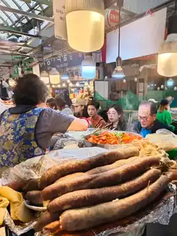 It was morning when we visited and the market was already crowded with people. When we entered the food court, we could already hear the cries of "Ajumma" attracting diners. It was really lively. Every snack shop was full of diners, and everyone was eating with gusto.
