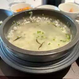 Transfer the kamameshi to another bowl and enjoy with a soy sauce-based sauce to your liking. The pot is filled with dashi soup to create a "scorched rice soup." A feature of Korean-style kamameshi is that it can be enjoyed in two ways at once.