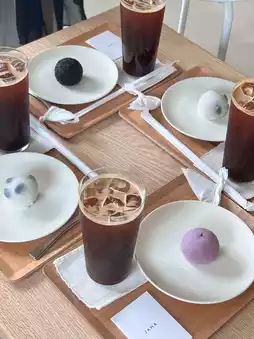 Introducing JAHA, located in the Gyeongbokgung area of Seoul. The specialty of this shop is colorful and cute rice cakes. The counter inside the very simple shop is lined with cute, round rice cakes. This time, I ordered anko butter rice cake and an iced Americano. The rice cakes come with a string and instructions, and you can use the string to cut the rice cake neatly into two. The anko butter was just the right amount of sweet and went well with the coffee. It was very delicious. The size of the rice cakes is small, so they are very easy to eat and can be enjoyed as a dessert after a meal! You can also take the rice cakes out! This shop also serves shaved ice in the summer~🍧