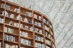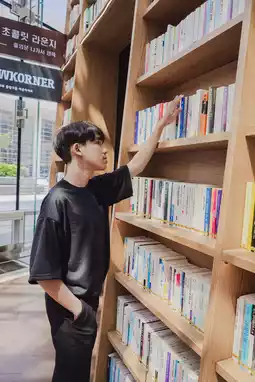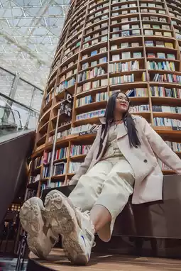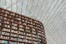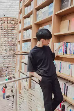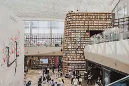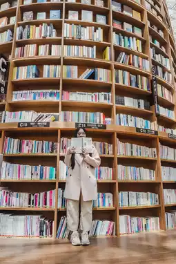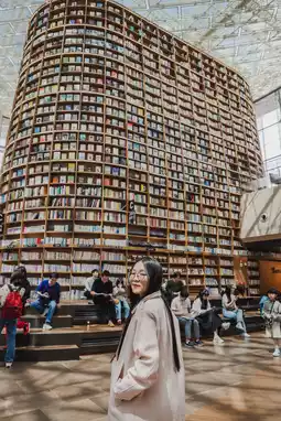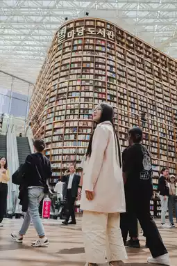 A large library in Gangnam in Coex mall with tall bookshelves and books all around.