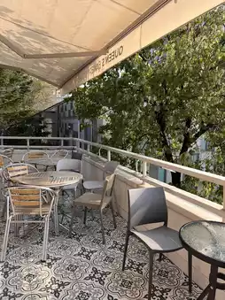 It has seats on the first and second floors and on the terrace, and it is spacious, so I think even a large group can sit without any problems!