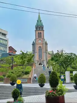 A cathedral with a solemn and quiet atmosphere that is a stark contrast to the hustle and bustle of the glamorous Myeongdong🕍✨