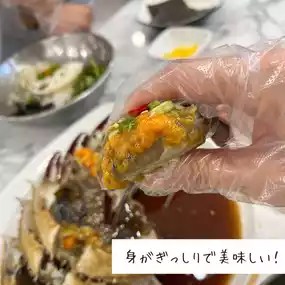 Put rice in the shell part where the crab miso is, mix it with a spoon, and eat it with seaweed for the ultimate deliciousness💕