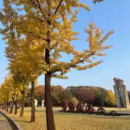 Olympic Park is really huge and they have a lane of ginko tree leaves that is the first photo.. so it is the best time to go down with the dropping of yellow 🍂 They are so beautiful you can spent hours taking photos there . You may also find the lone tree in Olympic park.