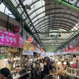 Once inside you are shopping around for some traditional Korean clothing, walking to the middle will be like a lot of big stalls with many people sitting and eating, if you are looking for traditional snacks or dishes, this is for you! There are many people during the day on weekdays. Some shops are lined up with long queues. The places are narrow and narrow. You can buy souvenirs after eating. If you want to find a little cheaper can walk a little into the alley, can say a little price.