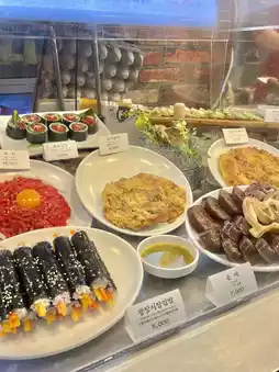Parkgane Bindaetteok is a famous restaurant in Gwangjang Market that I have visited more than 4 times in a year. You can taste various kinds of food from snacks to pancakes, such as Bindaetteok, Yukhoe Gimbap, Tteokbokki, and Narcotic Gimbap! The most famous of them all is Bindaetteok!! There are many kinds of Bindaetteok, so you can eat it according to your taste 😋
