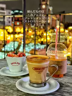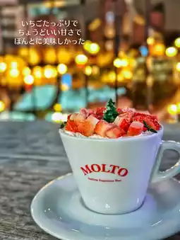 Strawberry shortcake in a cup and tiramisu with the word MOLTO on it