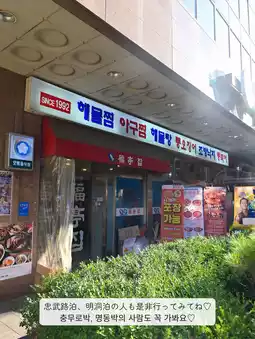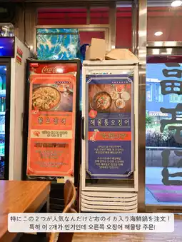 This place is in Chungmuro, within walking distance of Myeongdong! I went there because I wanted to eat 해물통오징어, a seafood hotpot with a lot of squid in it 🦑♡