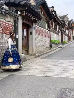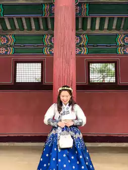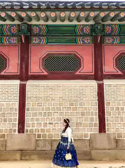 It would be interesting to visit the palace wearing a traditional Korean dress and blend into the Korean cityscape.
