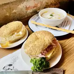 Beautiful bagels, exterior, interior, and the clothes of the staff