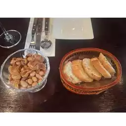 The complimentary appetizers of blue cheese and garlic baguette were delicious, and for our order, we chose French wine from Terrace Dossier, accompanied by Margherita pizza and chop steak as the side dishes. I plan to visit again. :)