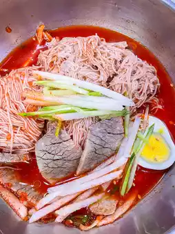 Korean cold noodles can be broadly divided into two types: Pyongyang cold noodles and Hamheung cold noodles.