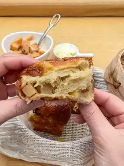 This cafe is popular for its "steamed bread" that is steamed in a steamer after you order it.