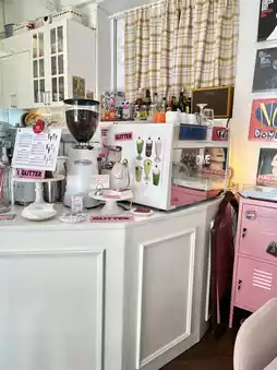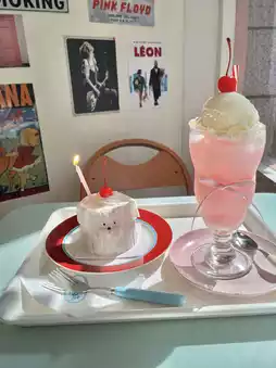 There are about four seats in the store, and cute decorations are scattered here and there.