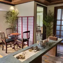 The interior of the cafe is uniquely decorated with a Japanese home feel.