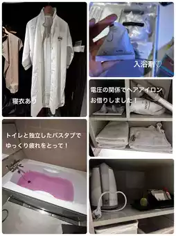 The room has separate bath and shower, so even if you're tired from walking around, you can relax in the bathtub with bath salts! It's great for Japanese people who love baths☺️